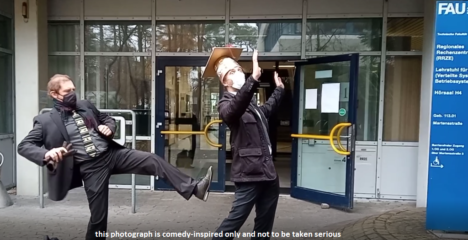 We all cordially congratulate Dominik Schneidereit, who successfully defended his Doctoral Thesis on November 25. Due to the current COVID-19 restrictions, we could only hand him over a custom-made doctoral hat in gold from a ’social distance‘, but celebrations are just postponed not repealed. Despite that we are happy for Dominik to have passed his written and oral examination with distinction and are delighted to digitally have shared this special day with him. During his thesis, Dominik designed, engineered, programmed and optimised three diagnostics research systems, traversing from single to multi-dimension spatial resolution. Inherent to all systems is the conceptual approach to connect sample function assessment with resolving their (macro-)molecular structure and tracking respective changes. These so called structure-function relationships across dimensions are representative scaling solutions for opto-biomechatronics systems. In 1D, the MechaMorph system analyses single muscle fiber biomechanics and tightly connected structural changes by allowing two photon Second Harmonic Generation imaging. The IsoStretcher advances to the 2D dimension by representing a novel, radial, iso-tropic inplane stretch device for studying the mechano-biology of cells and tissues/bio-materials. Due to its intelligent design, it can be mounted on external research microscopes and its software allows to continuously stretch the sample while monitoring its deformation, or cell-signalling via fluorescent markers. In the 3D space, the PiezoGrin applies high pressure to the sample to analyse its intrinsic resistance and connected structural and functional changes. With his doctoral thesis, Dominik truly added dimension to structure-function analyses and demonstrated new opportunities in the field of opto-biomechatronics which is also highlighted by several high impact publications (e.g. Adv Sci, Light Sci Appl).